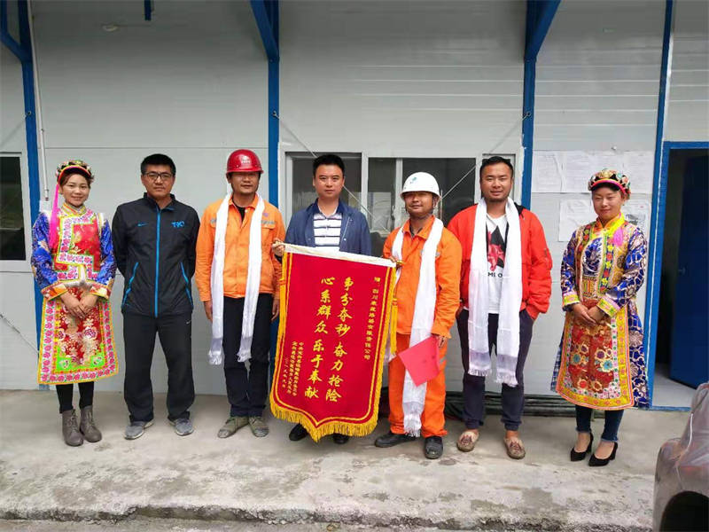 9月10日,中共寶興縣磽磧藏族鄉(xiāng)委員會、寶興縣磽磧藏族鄉(xiāng)人民政府敲鑼打鼓將一面“爭分奪秒,奮力搶險;心系群眾,樂于奉獻”的十六字錦旗和一封感謝信送到了雅安交建集團路橋公司寶興駐地。表達了寶興人民對交建集團在“8·22”特大洪災(zāi)抗洪搶險中為當?shù)乩习傩兆鰧嵤、解危難的感激之情。