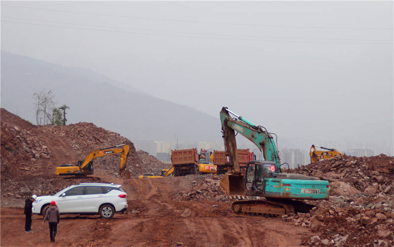其中,金雞關互通改造涉及挖方量達380萬立方米。施工不到一年時間,已形成明顯的開挖量,昔日金雞關已被削去大半,來回穿梭的車輛、設備正鉚足勁寸寸掘進。