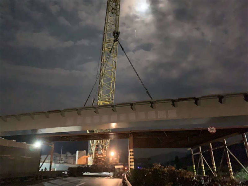 雅西跨線橋混凝土預(yù)制箱梁共計(jì)4片,本次架設(shè)的箱梁重140噸、長55余米,體積大、自身重、運(yùn)輸困難,且投入的大型機(jī)械設(shè)備較多,施工組織難度大。為順利完成架設(shè)任務(wù),市交通局多次組織召開專題會議,提前謀劃、細(xì)致安排、優(yōu)化組織,制定了施工專項(xiàng)方案和應(yīng)急措施。
