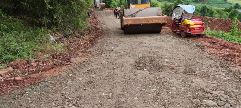 在路橋公司承接的“世界銀行貸款蘆山地震災(zāi)后恢復(fù)重建天全縣始陽至新華農(nóng)村公路”項(xiàng)目天全縣新華鄉(xiāng)柏樹村至永安村段,其村道路面結(jié)構(gòu)層差,路基窄,雨水多,晴通雨阻,對本地農(nóng)產(chǎn)品外運(yùn)造成很大困擾,嚴(yán)重影響了民眾的生產(chǎn)生活。為積極響應(yīng)市委市政府加快雅安市“四好農(nóng)村路”的部署安排,解決當(dāng)?shù)卮迕癯鲂须y、本土農(nóng)產(chǎn)品外銷滯后等問題,路橋公司天全項(xiàng)目部主動作為,在推進(jìn)項(xiàng)目部主體建設(shè)的同時,堅(jiān)持以問題為導(dǎo)向,采用“始新路”施工現(xiàn)場自拌水穩(wěn)料,為村民鋪設(shè)了一段長臨時水穩(wěn)路面,方便廣大村民順利出行,促進(jìn)當(dāng)?shù)剞r(nóng)產(chǎn)品物資交流。