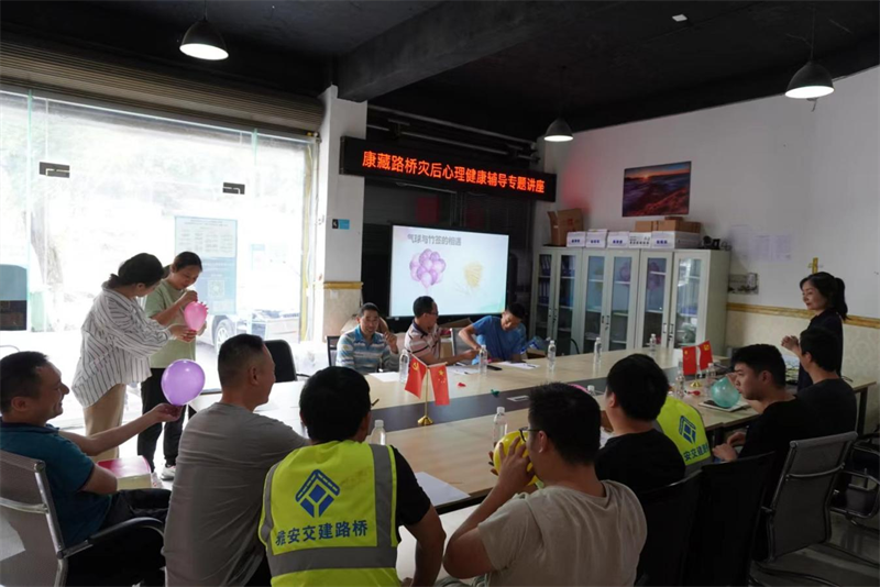 “6.1”蘆山地震發(fā)生后,路橋公司寶興項目部員工親身經(jīng)歷了全過程,第一時間組織人力、物力參加人員道路搶通保通和生產(chǎn)自救,突發(fā)地震災(zāi)害對職工造成不同程度的心理沖擊;顒又校罄蠋熍c員工們歡聚一堂,以小游戲與員工互動調(diào)整大家心理狀態(tài),圍繞員工心理健康常識、常見心理困擾及應(yīng)對策略和如何緩解工作壓力、控制個人情緒、提高心理健康水平等內(nèi)容,評估員工心理健康狀況,剖析員工情緒現(xiàn)狀及負(fù)面情緒產(chǎn)生的原因,幫助梳理解決方案。