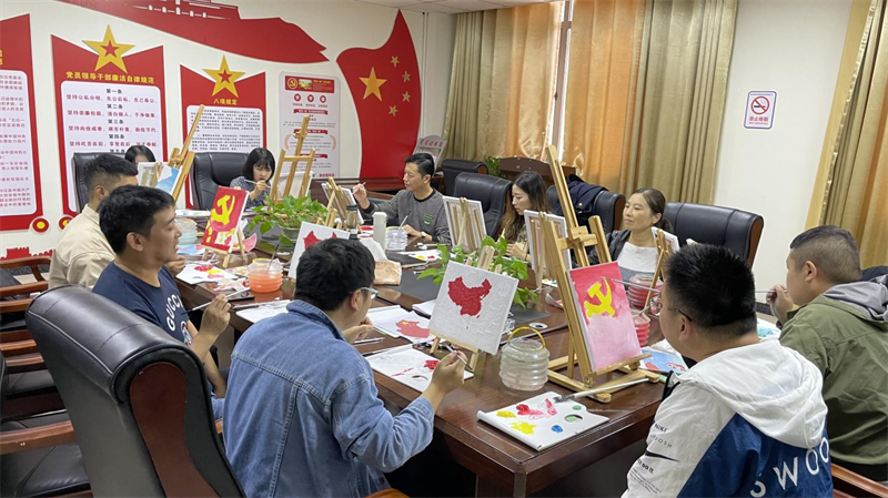 活動(dòng)中,大家興致勃勃地領(lǐng)取了畫筆、顏料、油畫框等工具,即刻投入到繪畫狀態(tài)中。他們一筆一劃仔細(xì)斟酌、認(rèn)真構(gòu)思,充分發(fā)揮想象,通過精心的布局、豐富的色彩,繪出自己熱愛黨的心聲,勾勒出紅色印記,用色彩點(diǎn)燃愛國情懷,為迎接黨的二十大勝利召開獻(xiàn)上一份真摯的祝福。