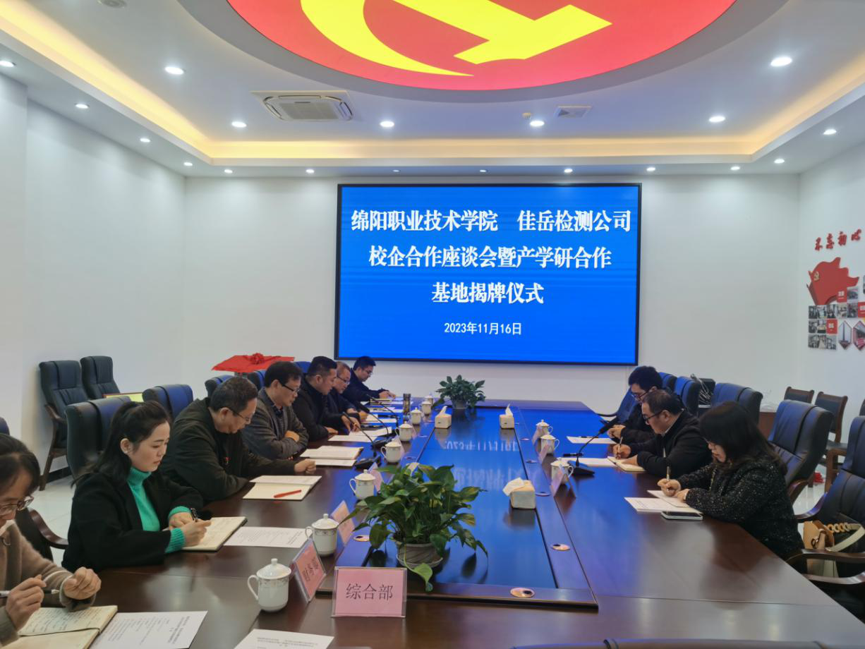 11月16日,雅安交建集團(tuán)所屬四川佳岳檢測咨詢有限公司與綿陽職業(yè)技術(shù)學(xué)院舉行校企合作座談會暨產(chǎn)學(xué)研合作基地揭牌儀式,雙方就產(chǎn)學(xué)研實(shí)訓(xùn)基地建設(shè)、人才培養(yǎng)、外加劑研發(fā)生產(chǎn)等進(jìn)行深入交流。綿陽職業(yè)技術(shù)學(xué)院材料與建造學(xué)院院長賈陸軍,四川佳岳佳岳檢測咨詢有限公司執(zhí)行董事何銘新參加座談。