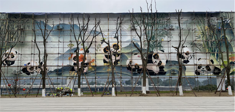 北緯30度公園LED大屏美化項目繪圖緊緊圍繞“川藏鐵路第一城,綠色發(fā)展示范市”總體目標(biāo),采用簡約又富有內(nèi)涵的國畫水墨風(fēng)格,將9只形態(tài)生動的大熊貓與綠意盎然的草地樹林、婉轉(zhuǎn)流長的河流江水、蜿蜒曲折的道路完美融合,不僅展現(xiàn)了大美雅安的人文景觀和自然風(fēng)光,更樹立了人與自然和諧共處的生態(tài)理念。是雅安交建集團深入學(xué)習(xí)貫徹黨的二十大精神,全面落實省委十二屆二次全會、市委五屆二次全會部署,嚴(yán)格按照2022年12月20日市委書記李酌在調(diào)研雅州大道沿線片區(qū)城市更新改造項目施工現(xiàn)場的有關(guān)指示要求及市委宣傳部的工作安排,奮力推動文明城市創(chuàng)建全面提質(zhì)提速提效的有力舉措之一,將有效助力文旅融合、提升城市吸引力。