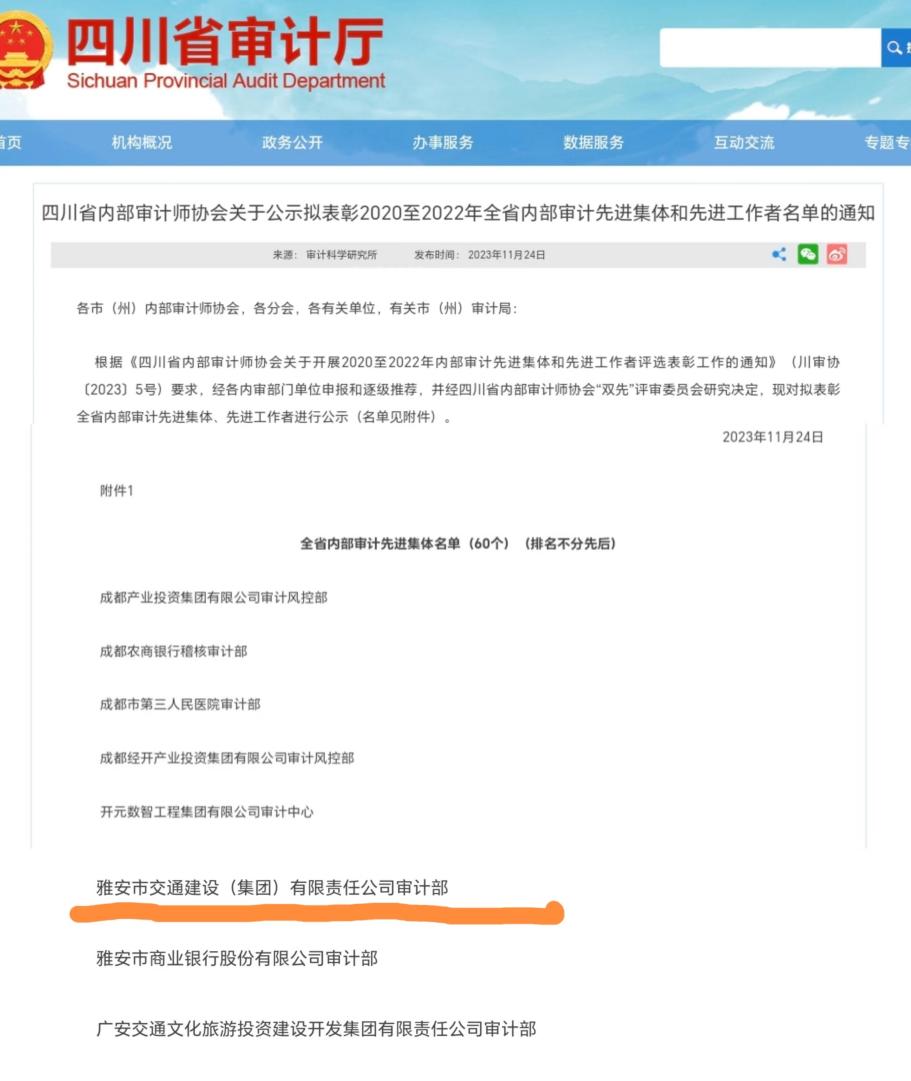 雅安交建集團(tuán)黨委高度重視內(nèi)部審計(jì)工作,公司成立獨(dú)立內(nèi)審機(jī)構(gòu),由集團(tuán)黨委書記、董事長(zhǎng)直接分管,按照內(nèi)審計(jì)劃和黨委、董事會(huì)安排,獨(dú)立開(kāi)展工作,并定期向黨委、董事會(huì)匯報(bào)內(nèi)審工作開(kāi)展情況。近年來(lái),公司已建立《內(nèi)部審計(jì)工作管理辦法》《經(jīng)濟(jì)責(zé)任審計(jì)實(shí)施細(xì)則》等內(nèi)部審計(jì)制度,通過(guò)全面審計(jì)、專項(xiàng)審計(jì)和“1+N”內(nèi)部監(jiān)督檢查工作機(jī)制,規(guī)范集團(tuán)及子公司制度建設(shè),提升管理水平,助力集團(tuán)創(chuàng)建“千億國(guó)企,品質(zhì)交建”。
