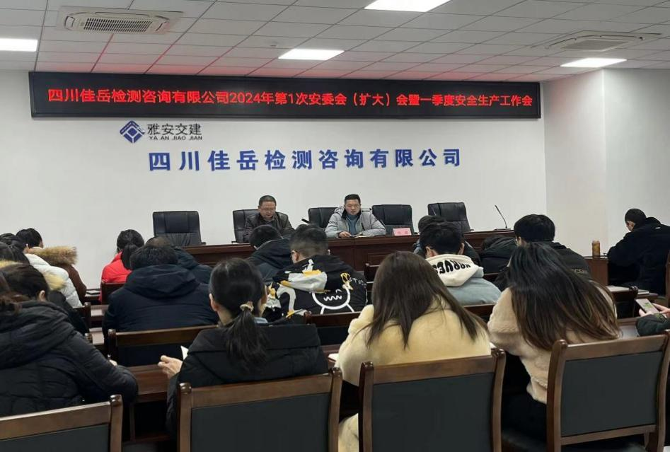 1月5日,四川佳岳檢測咨詢有限公司召開2024年一季度安委會(擴(kuò)大)會議暨安全工作部署會議,傳達(dá)學(xué)習(xí)近期安全生產(chǎn)相關(guān)文件精神,通報2023年安全生產(chǎn)工作情況,對百日安全攻堅(jiān)專項(xiàng)整治行動進(jìn)行再安排,并簽訂2024年度各級安全責(zé)任目標(biāo)責(zé)任書。