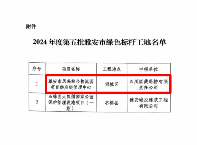 近日,由雅安交建集團康藏路橋公司建設(shè)的鳳鳴綜合物流園項目供應(yīng)鏈管理中心,經(jīng)市住建局、市生態(tài)環(huán)境局、市城管執(zhí)法局聯(lián)合評審小組綜合考評,被評為雅安市綠色標(biāo)桿工地。