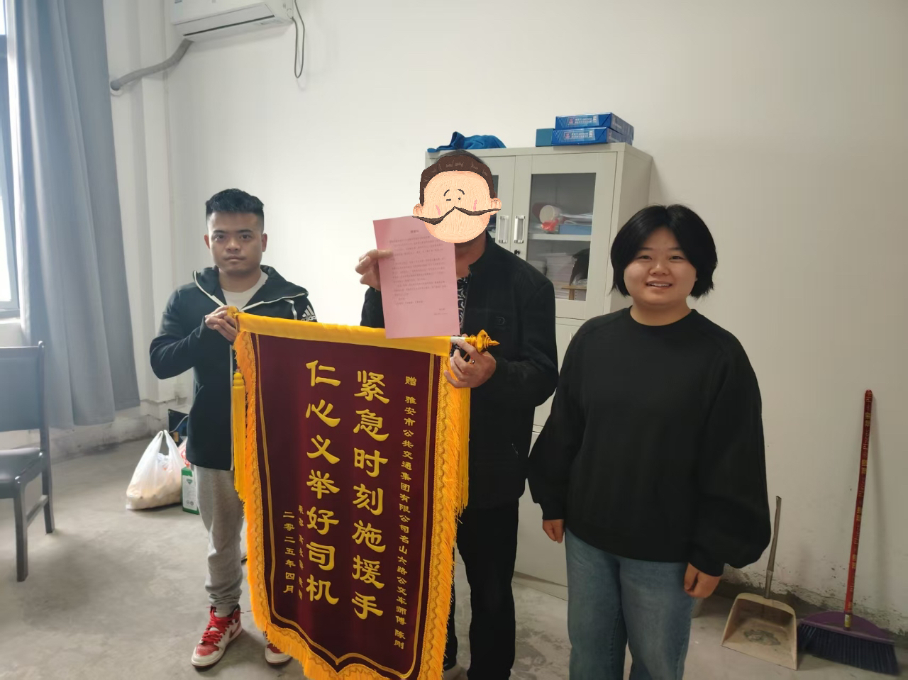 4月10日,市民高先生專程來到雅安公交集團,將一面寫有“緊急時刻伸援手,仁心義舉好司機”的錦旗送到公交公司工作人員手中,向危急關(guān)頭及時伸出援手的6路公交車駕駛員陳剛師傅表示感謝。