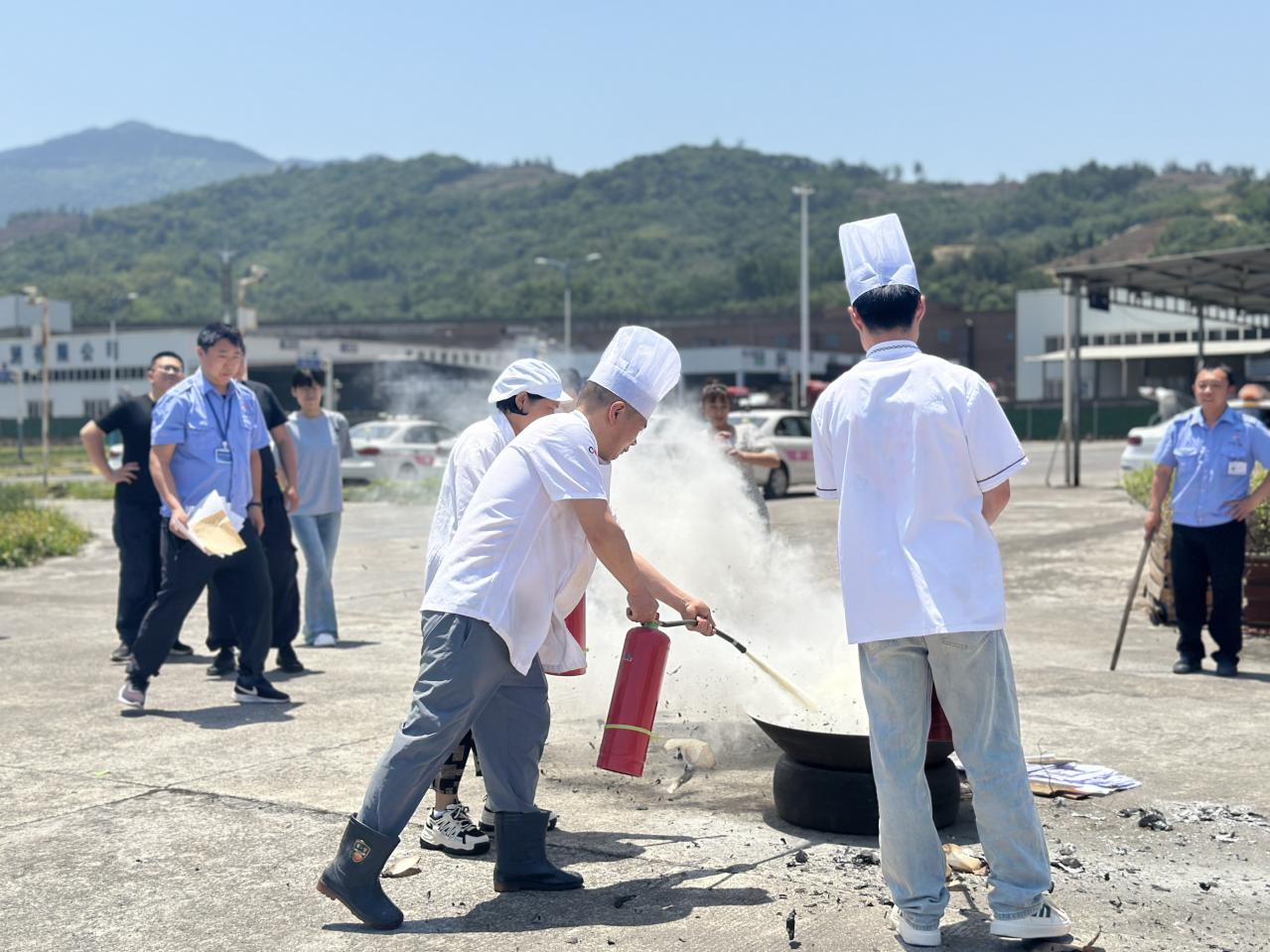 正式演練前,公司副總經(jīng)理鄭循禮講述了“防災(zāi)減災(zāi)日”的由來(lái),傳授了防震避難、防火防電、防洪防汛等方面的基本知識(shí),專(zhuān)業(yè)人員對(duì)消防器材使用方式進(jìn)行了教學(xué),并組織廚師、安全部重點(diǎn)人員模擬起火現(xiàn)場(chǎng),“零距離”體驗(yàn)消防護(hù)具。隨后,開(kāi)展地震應(yīng)急演練,在模擬地震的預(yù)警信號(hào)發(fā)出后,全體職工運(yùn)用學(xué)習(xí)的避震知識(shí),雙手抱頭、蜷縮身體、降低重心,快速有序撤離室內(nèi)到達(dá)戶外安全區(qū)域。