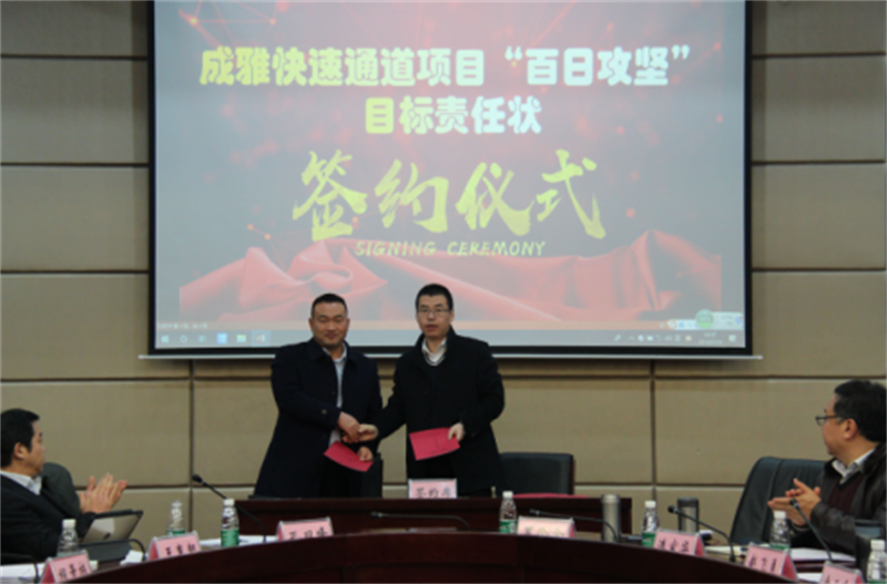 會(huì)上,項(xiàng)目公司介紹了項(xiàng)目建設(shè)情況;市交通運(yùn)輸局安排布置了“百日攻堅(jiān)”活動(dòng);中建三局、六局、參建單位分別發(fā)言,建設(shè)單位分別與各標(biāo)段簽訂“百日攻堅(jiān)”責(zé)任狀,會(huì)議在嚴(yán)肅又緊張的氛圍下進(jìn)行。