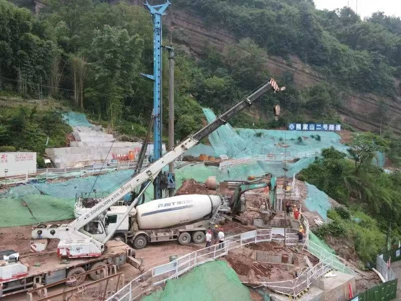 “咚咚咚……”在雨城區(qū)多營鎮(zhèn)五營村熊家山二號隧道出口端空地上,旋挖鉆機(jī)開足馬力,朝著地層深處掘進(jìn),不斷發(fā)出富有節(jié)奏的聲響!懊總(gè)樁基有二十多米深!眹318線名山區(qū)黑竹(成都界)至雨城區(qū)多營段改建工程項(xiàng)目副經(jīng)理林洲,每天都要到各施工點(diǎn)位查看進(jìn)度。他說,熊家山二號隧道附近山體為順層帶,易產(chǎn)生滑坡,進(jìn)洞施工前需要先在洞外打抗滑樁,以確保施工安全,目前還在開展剩下3根抗滑樁的施工。
