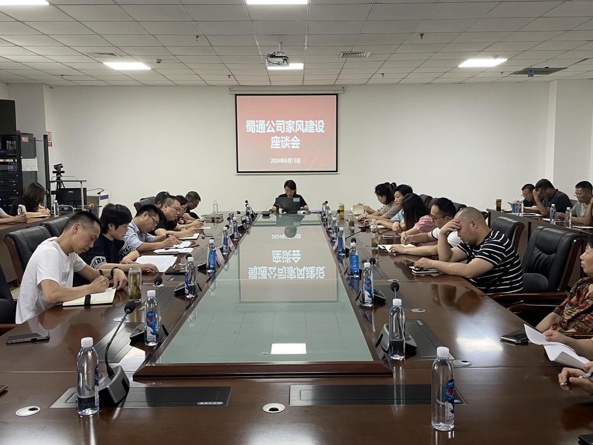 為鞏固提升“雅廉細(xì)胞”示范單位成色,6月13日蜀通公司召開2024年度家風(fēng)建設(shè)座談會(huì),引導(dǎo)和激勵(lì)領(lǐng)導(dǎo)干部家屬把家風(fēng)建設(shè)擺在首要位置,廉潔修身、廉潔齊家,以優(yōu)良家風(fēng)涵養(yǎng)廉政作風(fēng)。蜀通公司經(jīng)營(yíng)班子成員、中層干部公司部分重點(diǎn)崗位人員及家屬參加會(huì)議。