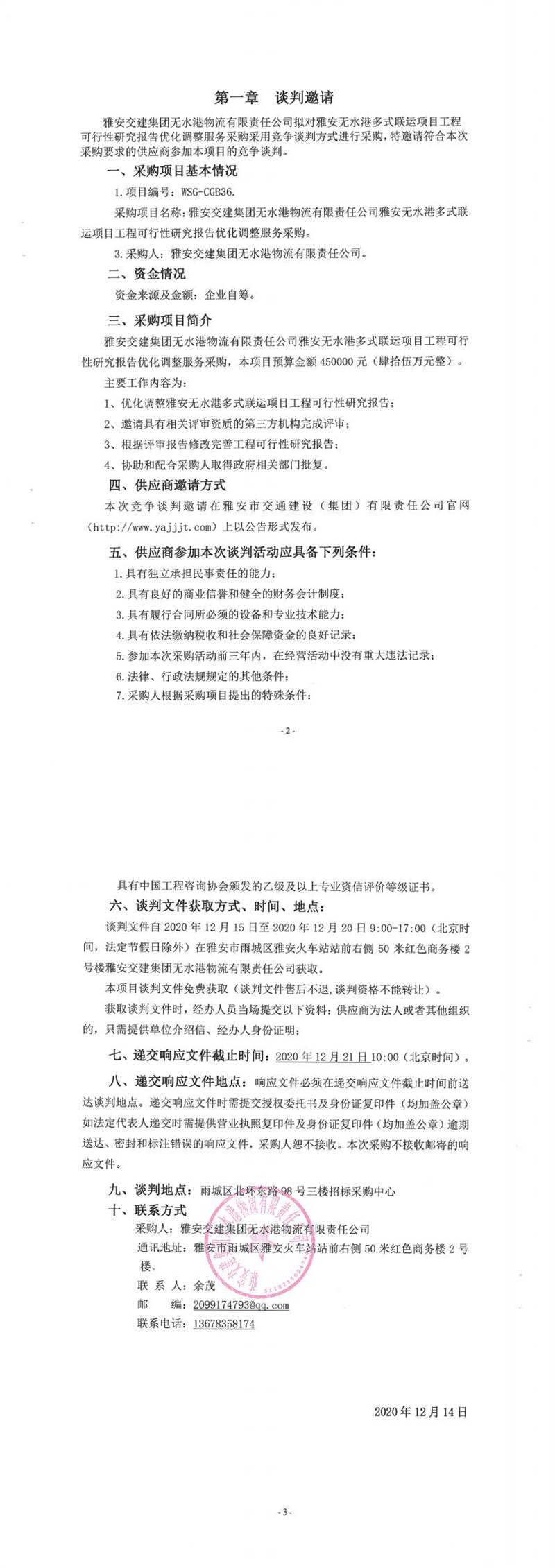 雅安交建集團(tuán)無水港物流有限責(zé)任公司雅安無水港多式聯(lián)運(yùn)項(xiàng)目工程可行性研究報(bào)告優(yōu)化調(diào)整服務(wù)采購競爭談判公告