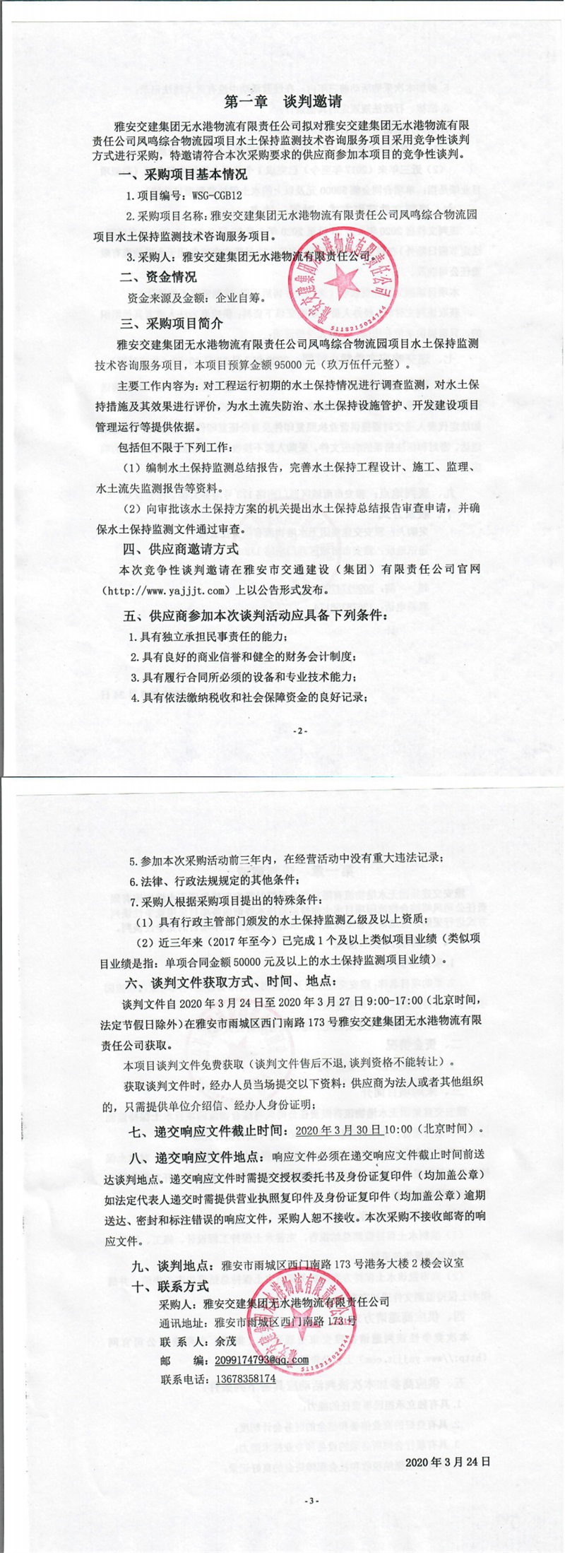 雅安交建集團(tuán)無水港物流有限責(zé)任公司鳳鳴綜合物流園項(xiàng)目水土保持監(jiān)測(cè)技術(shù)咨詢服務(wù)項(xiàng)目競爭性談判公告