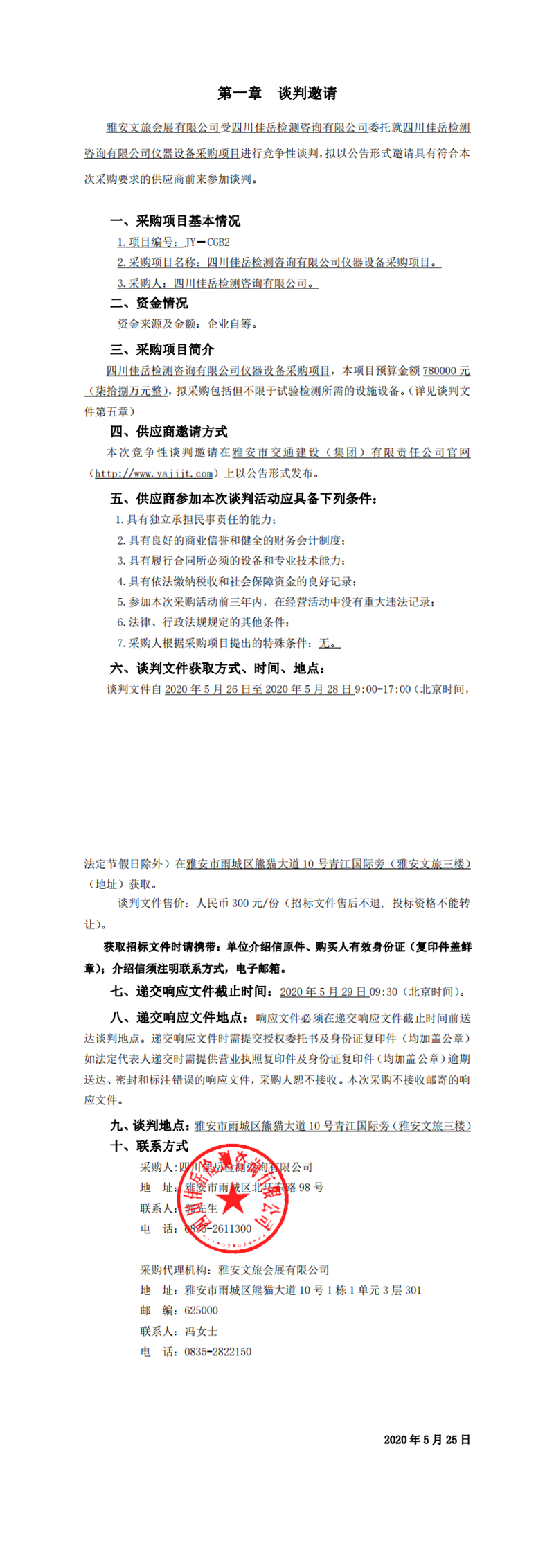 四川佳岳檢測咨詢有限公司儀器設(shè)備采購項目競爭性談判公告