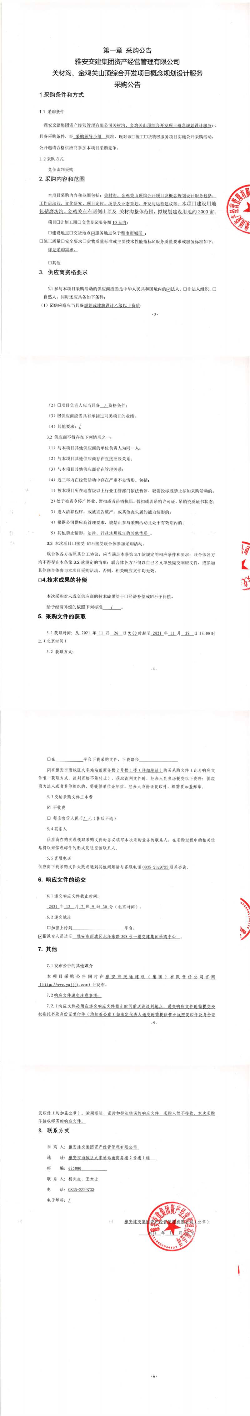 雅安交建集團資產(chǎn)經(jīng)營管理有限公司關(guān)材溝、金雞關(guān)山頂綜合開發(fā)項目概念規(guī)劃設計服務采購公告
