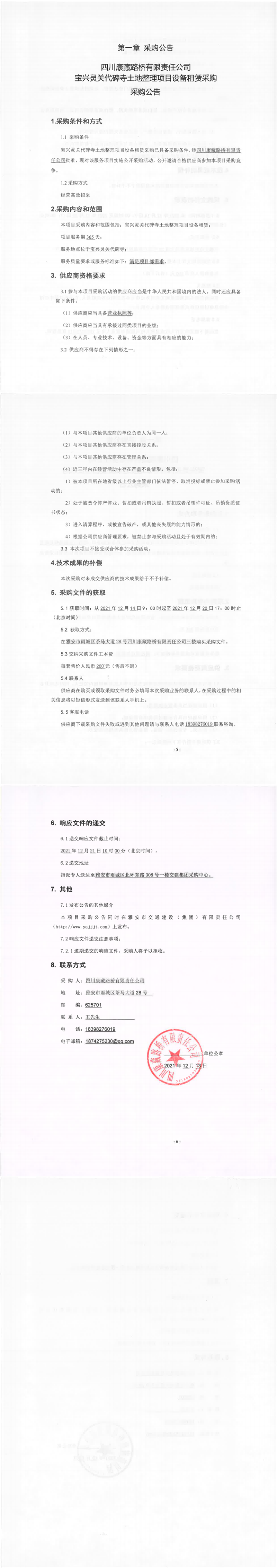 四川康藏路橋有限責(zé)任公司寶興靈關(guān)代碑寺土地整理項(xiàng)目設(shè)備租賃采購(gòu)采購(gòu)公告