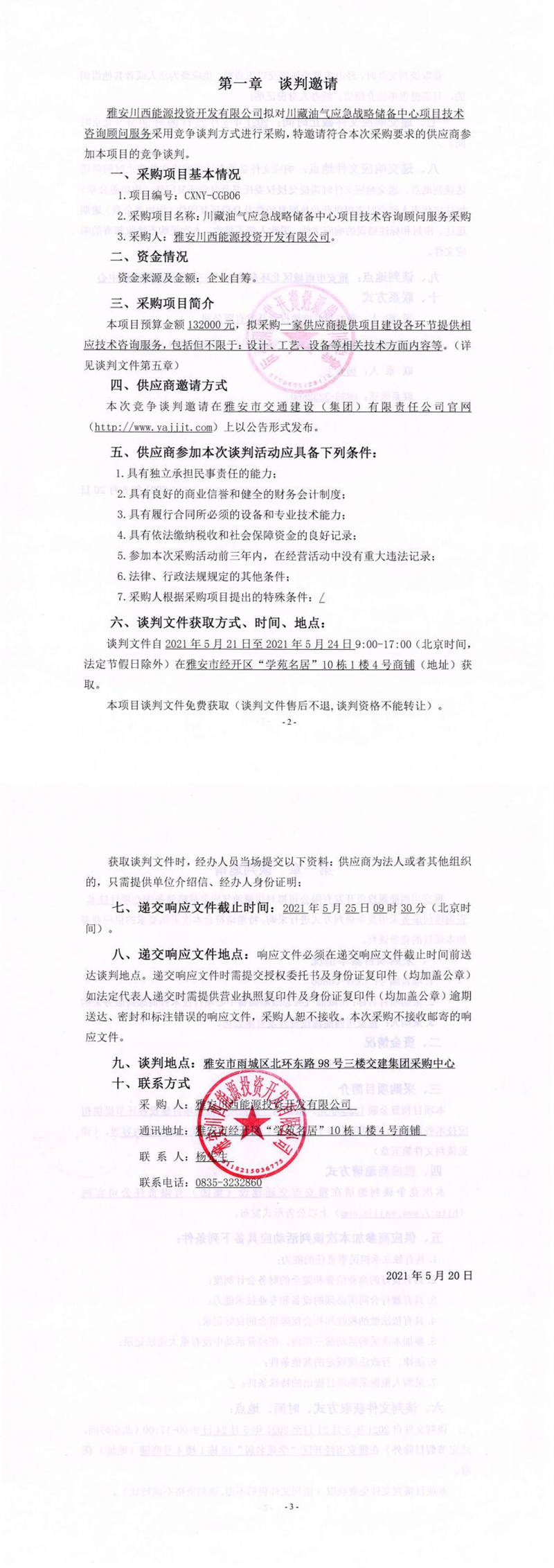 雅安川西能源投資開發(fā)有限公司川藏油氣應(yīng)急戰(zhàn)略儲(chǔ)備中心項(xiàng)目技術(shù)咨詢顧問服務(wù)采購競爭談判公告