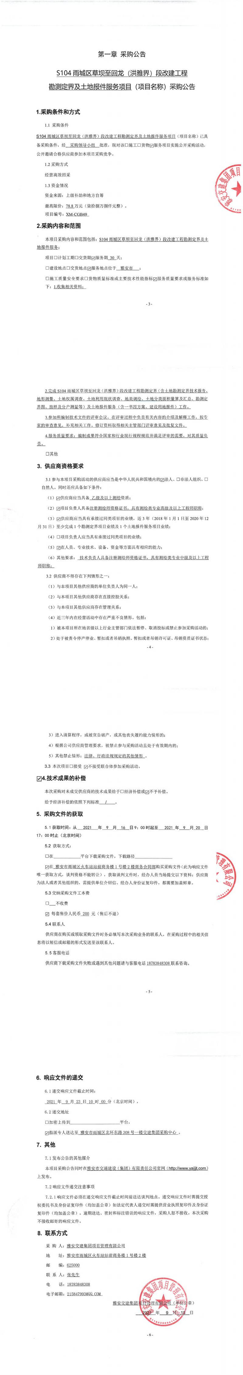 雅安交建集團(tuán)項目管理有限公司S104雨城區(qū)草壩至回龍(洪雅界)段改建工程勘測定界及土地報件服務(wù)項目采購公告