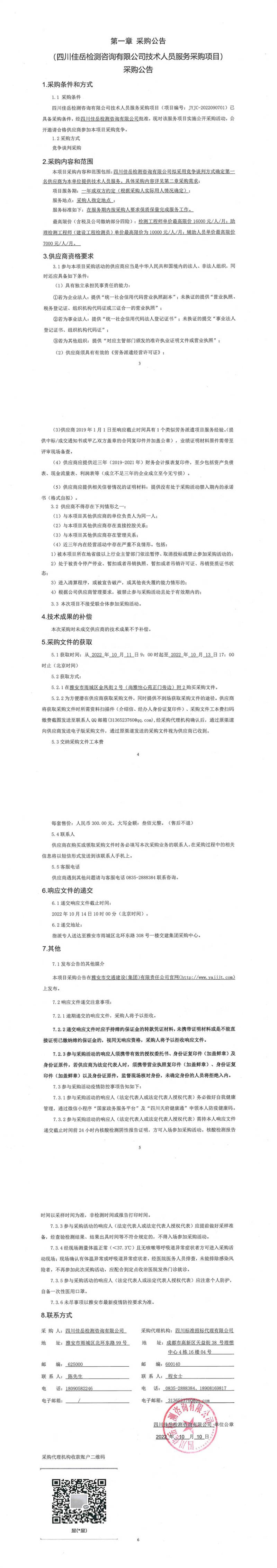 四川佳岳檢測咨詢有限公司技術(shù)人員服務(wù)采購項(xiàng)目采購公告
