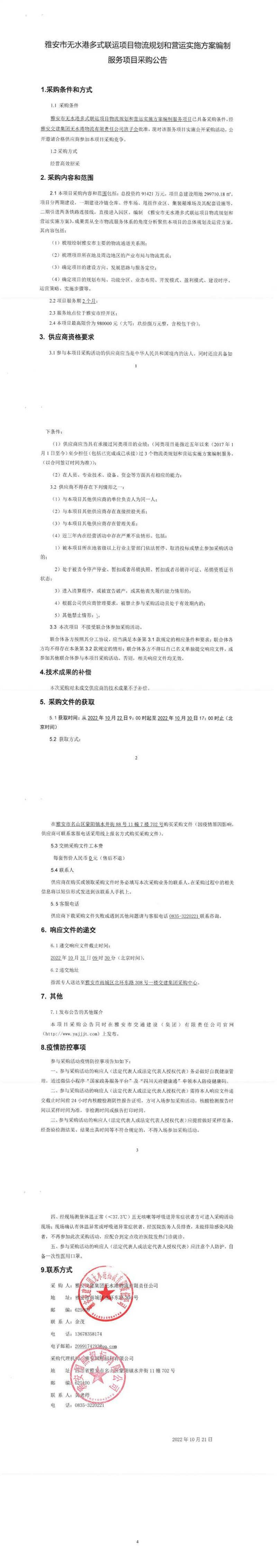 雅安交建集團無水港物流有限責(zé)任公司雅安市無水港多式聯(lián)運項目物流規(guī)劃和營運實施方案編制服務(wù)項目采購公告