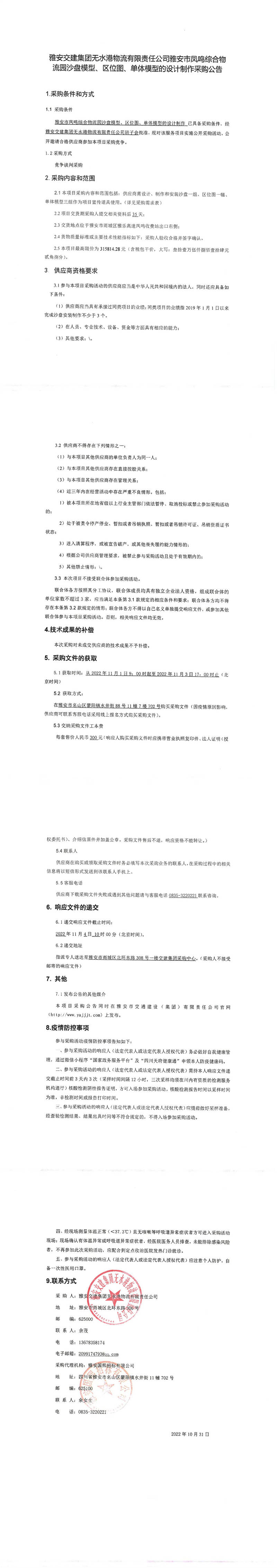 雅安交建集團無水港物流有限責任公司雅安市鳳鳴綜合物流園沙盤模型、區(qū)位圖、單體模型的設(shè)計制作采購公告