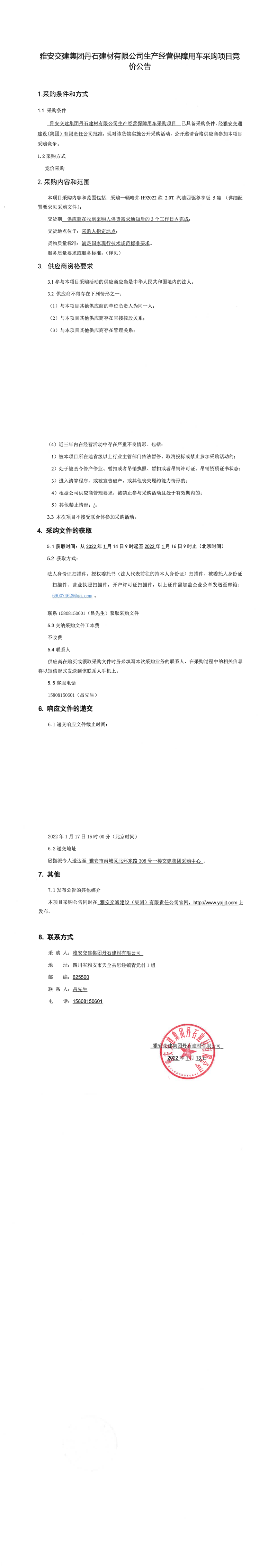 雅安交建集團(tuán)丹石建材有限公司生產(chǎn)經(jīng)營(yíng)保障用車采購項(xiàng)目競(jìng)價(jià)公告