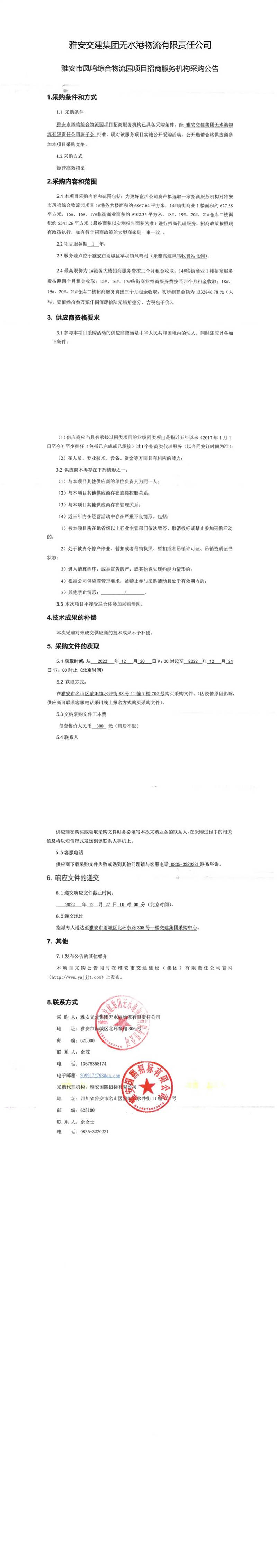 雅安交建集團(tuán)無水港物流有限責(zé)任公司雅安市鳳鳴綜合物流園項目招商服務(wù)機構(gòu)采購公告