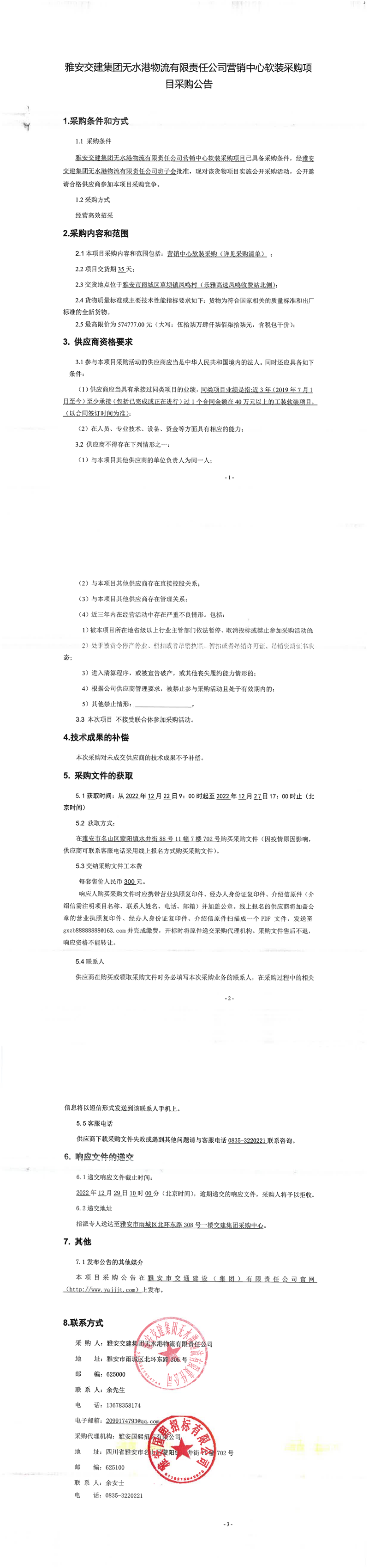 雅安交建集團(tuán)無(wú)水港物流有限責(zé)任公司營(yíng)銷(xiāo)中心軟裝采購(gòu)項(xiàng)目采購(gòu)公告
