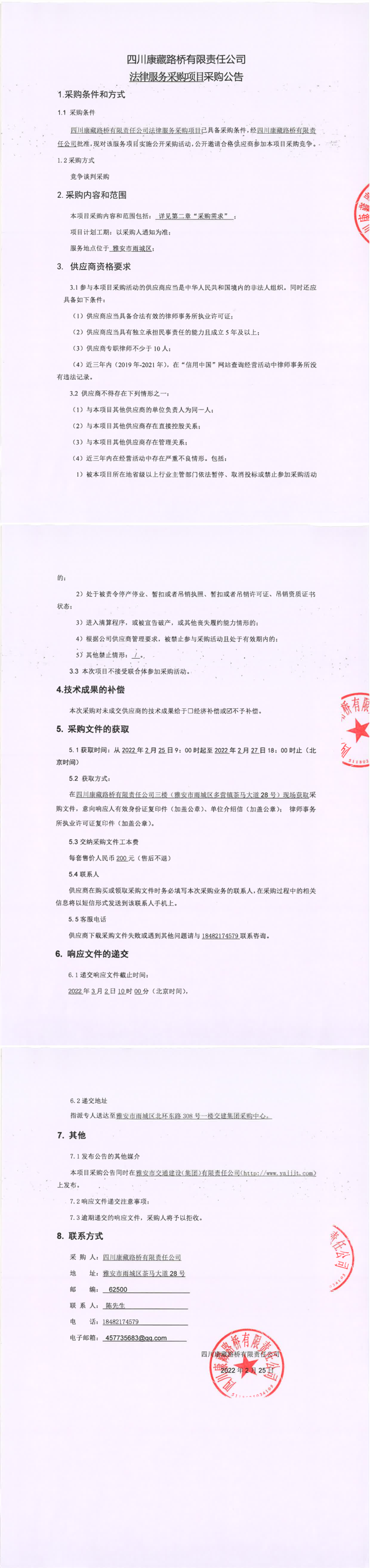 四川康藏路橋有限責任公司法律服務采購項目采購公告
