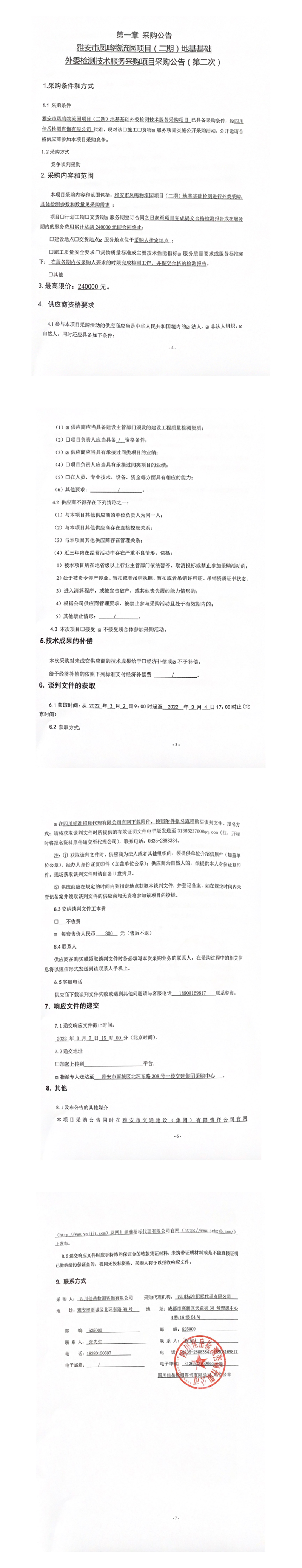 四川佳岳檢測(cè)咨詢有限公司雅安市鳳鳴物流園項(xiàng)目(二期)地基基礎(chǔ)外委檢測(cè)技術(shù)服務(wù)采購(gòu)項(xiàng)目采購(gòu)公告(第二次)