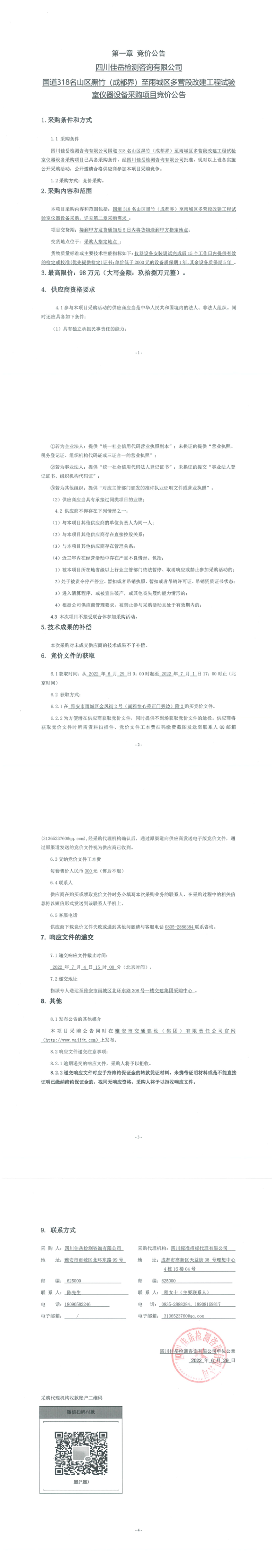 四川佳岳檢測(cè)咨詢有限公司國(guó)道318名山區(qū)黑竹(成都界)至雨城區(qū)多營(yíng)段改建工程試驗(yàn)室儀器設(shè)備采購(gòu)項(xiàng)目競(jìng)價(jià)公告