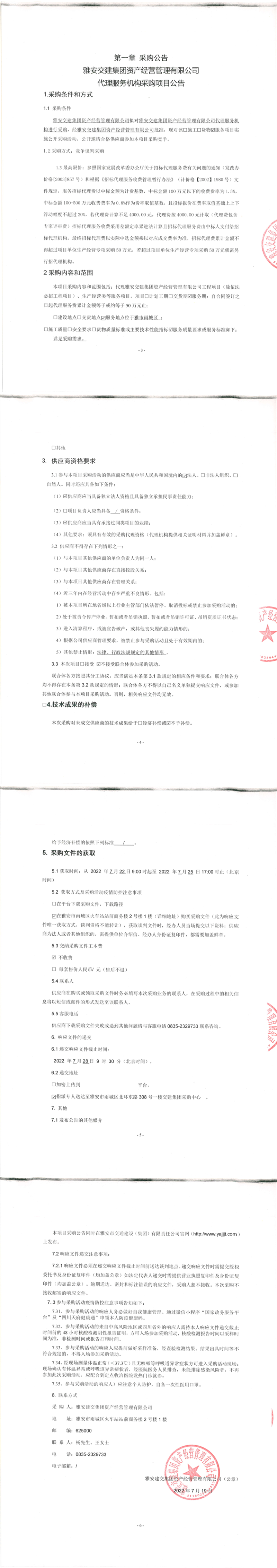 雅安交建集團資產(chǎn)經(jīng)營管理有限公司代理服務機構采購項目公告