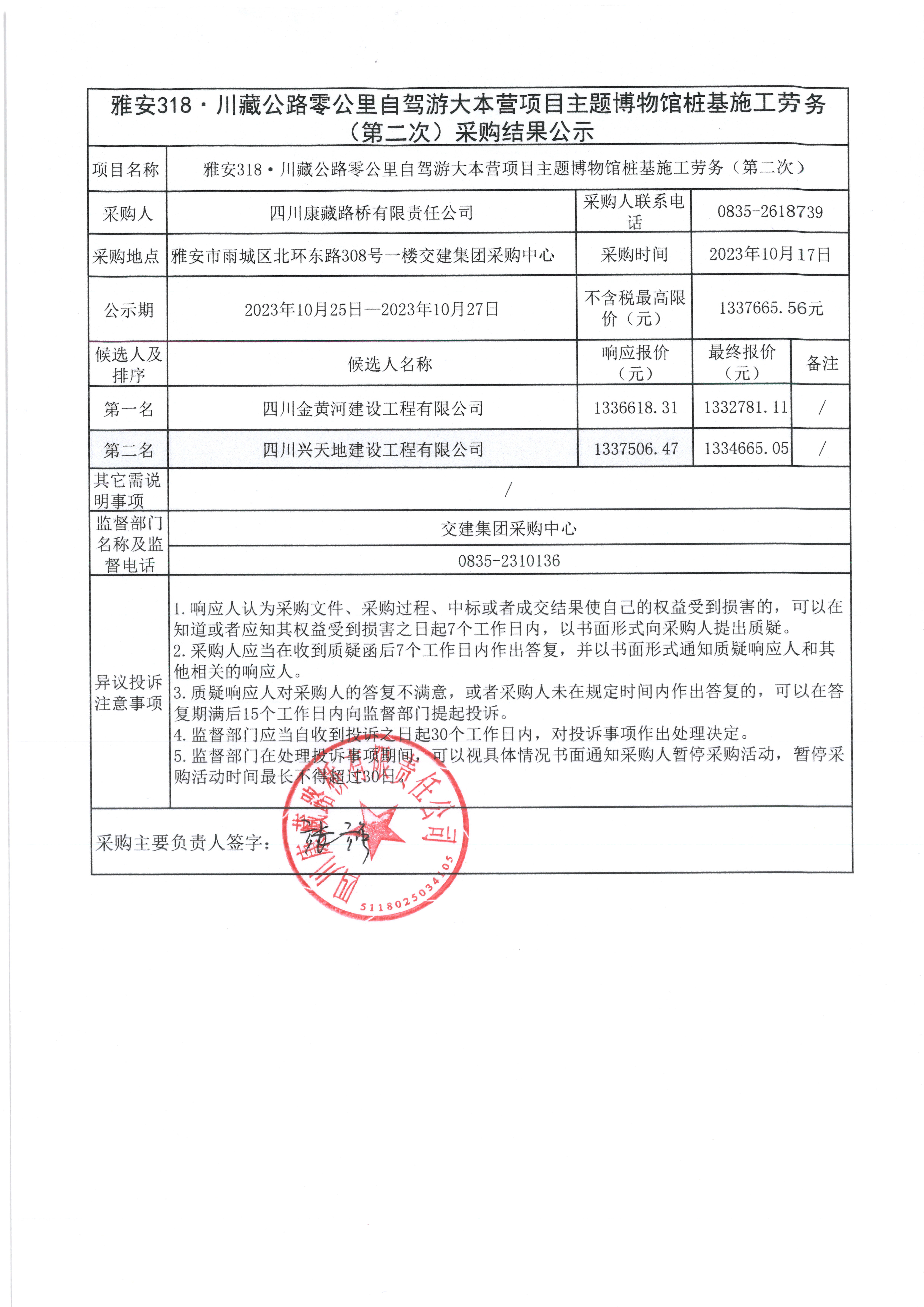 四川康藏路橋有限責(zé)任公司雅安318·川藏公路零公里自駕游大本營項目主題博物館樁基施工勞務(wù)(第二次)采購結(jié)果公示