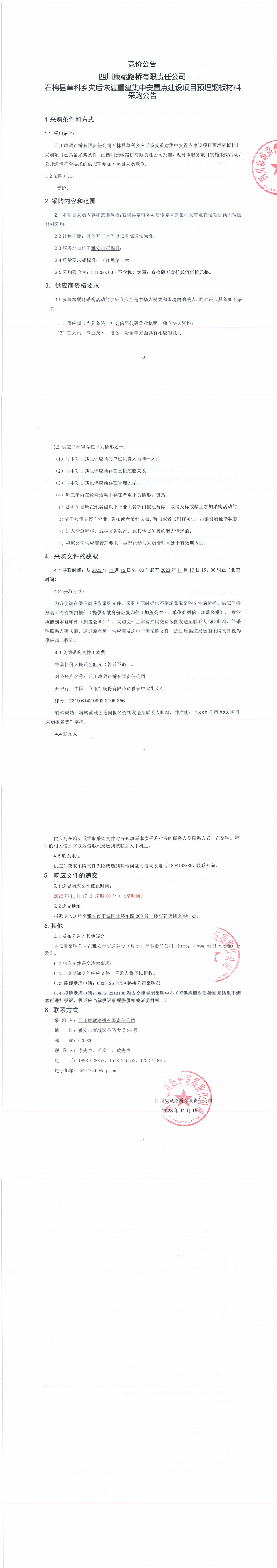 四川康藏路橋有限責(zé)任公司石棉縣草科鄉(xiāng)災(zāi)后恢復(fù)重建集中安置點(diǎn)建設(shè)項(xiàng)目預(yù)埋鋼板材料采購(gòu)公告
