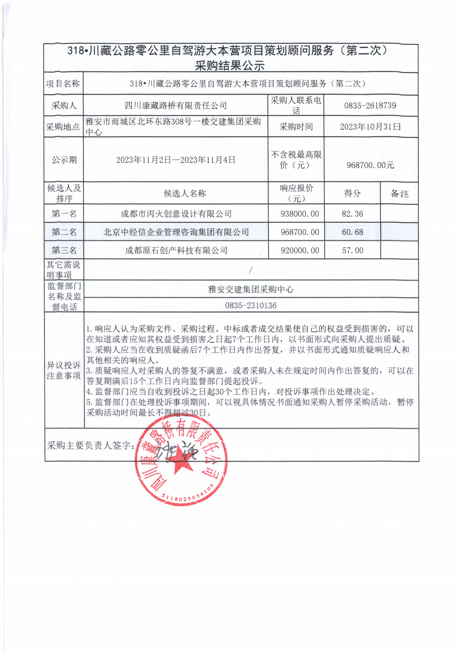 四川康藏路橋有限責(zé)任公司 318•川藏公路零公里自駕游大本營(yíng)項(xiàng)目策劃顧問服務(wù)(第二次)采購結(jié)果公示