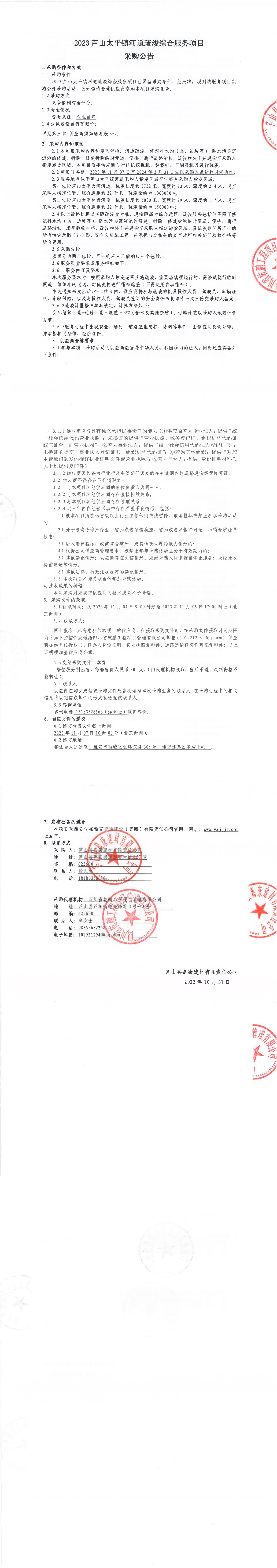蘆山縣嘉康建材有限責任公司2023蘆山太平鎮(zhèn)河道疏浚綜合服務(wù)項目采購公告