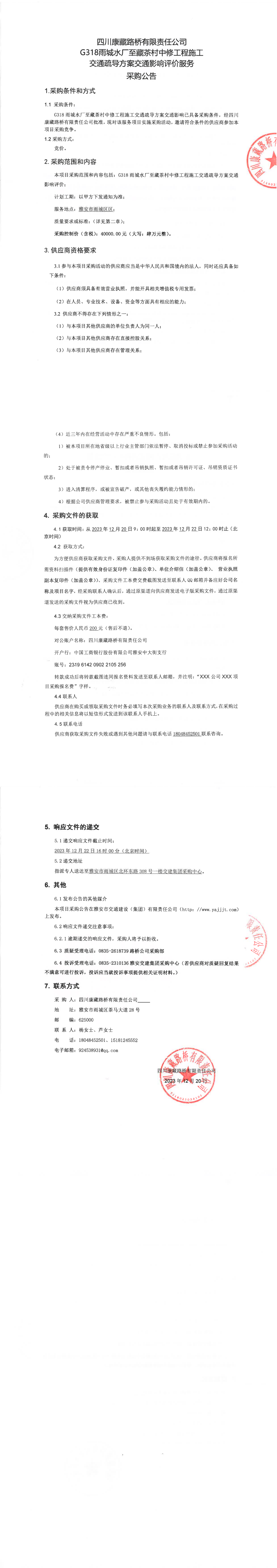 四川康藏路橋有限責(zé)任公司G318雨城水廠至藏茶村中修工程施工交通疏導(dǎo)方案交通影響評價服務(wù)采購公告