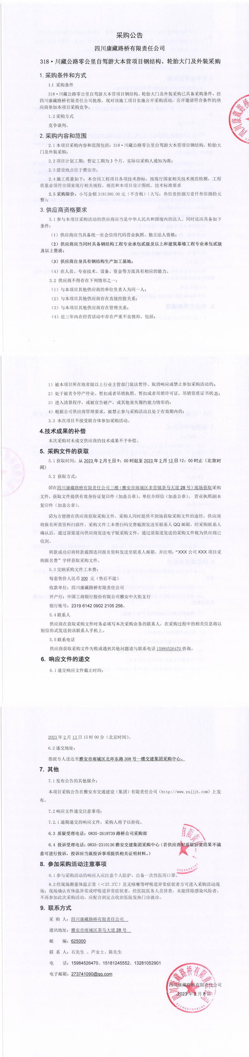 四川康藏路橋有限責(zé)任公司318.川藏公路零公里自駕游大本營項(xiàng)目鋼結(jié)構(gòu)、輪胎大門及外裝采購采購公告