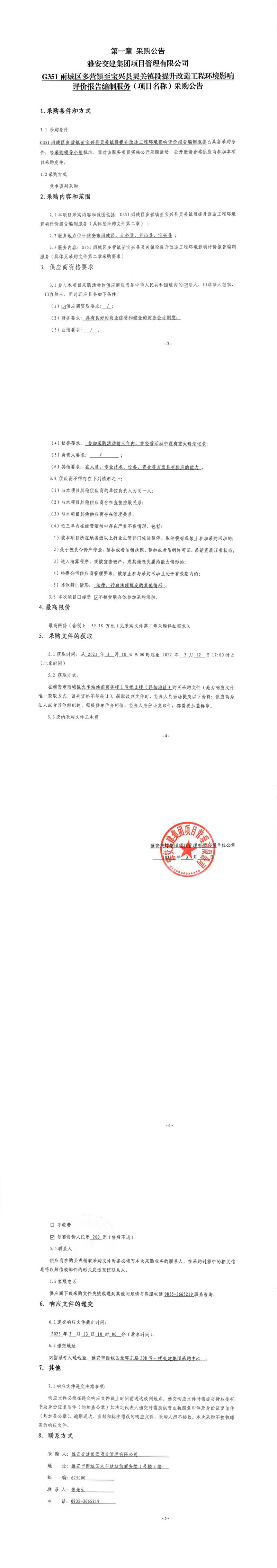 雅安交建集團(tuán)項(xiàng)目管理有限公司G351雨城區(qū)多營鎮(zhèn)至寶興縣靈關(guān)鎮(zhèn)段提升改造工程環(huán)境影響評(píng)價(jià)報(bào)告編制服務(wù)(項(xiàng)目名稱)采購公告