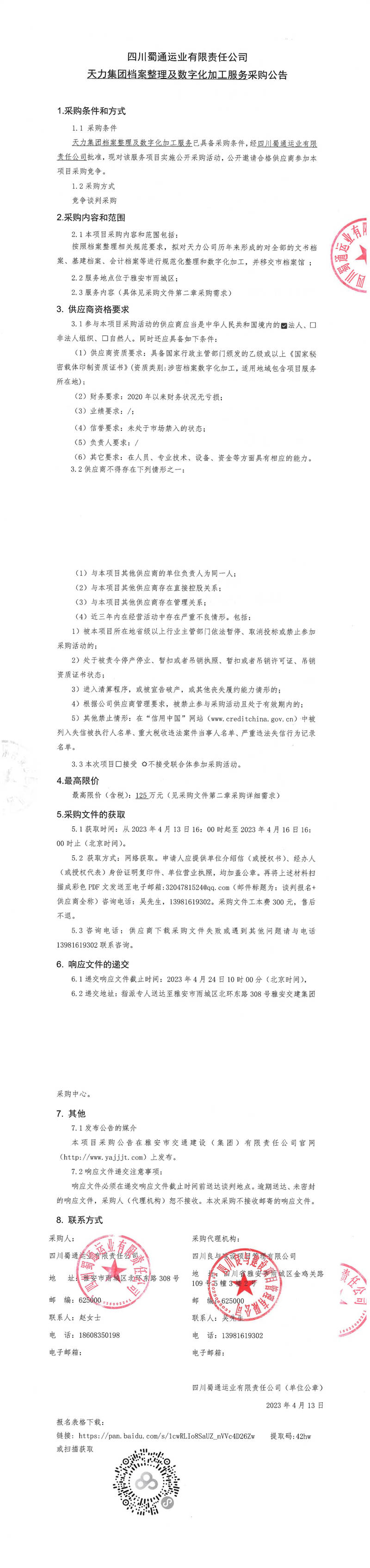 四川蜀通運(yùn)業(yè)有限責(zé)任公司天力集團(tuán)檔案整理及數(shù)字化加工服務(wù)采購(gòu)公告