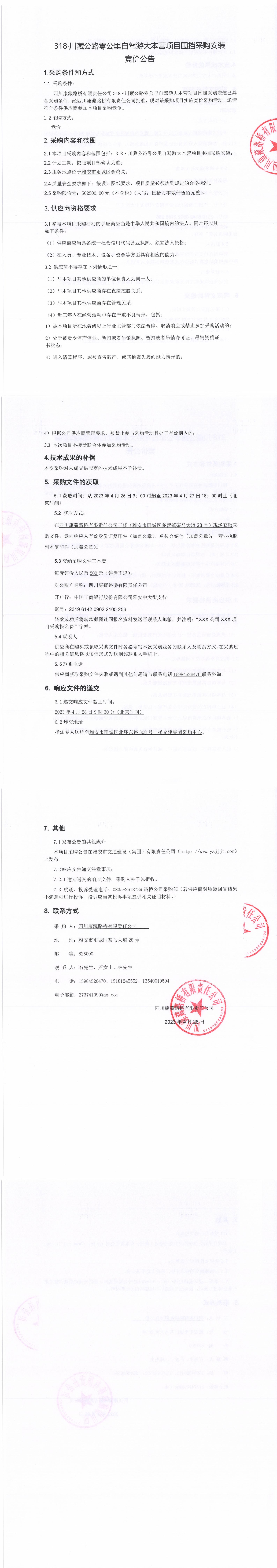 四川康藏路橋有限責(zé)任公司318·川藏公路零公里自駕游大本營項目圍擋采購采購安裝競價公告