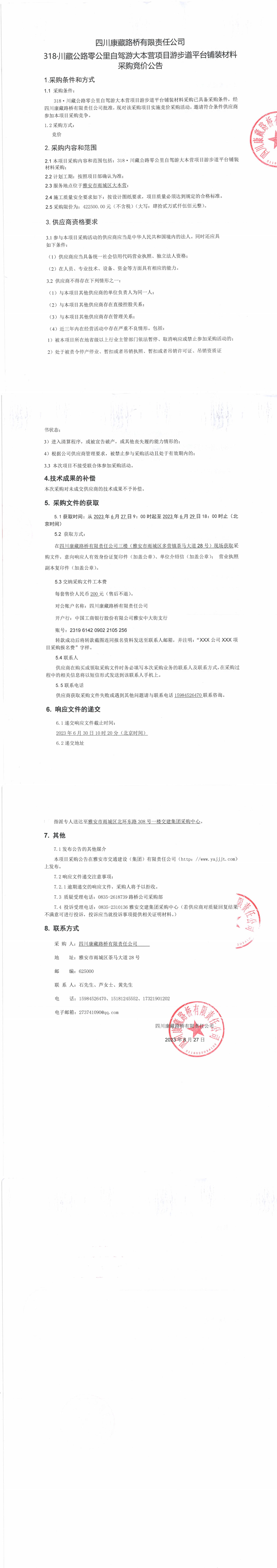 四川康藏路橋有限責(zé)任公司318·川藏公路零公里自駕游大本營項(xiàng)目步游道平臺鋪裝材料采購競價公告