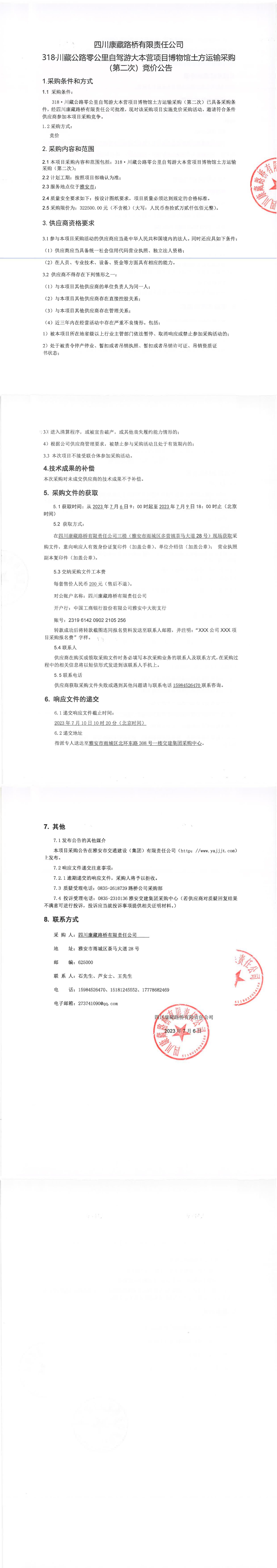 四川康藏路橋有限責(zé)任公司318·川藏公路零公里自駕游大本營(yíng)項(xiàng)目博物館土方運(yùn)輸采購(gòu)(第二次)競(jìng)價(jià)公告
