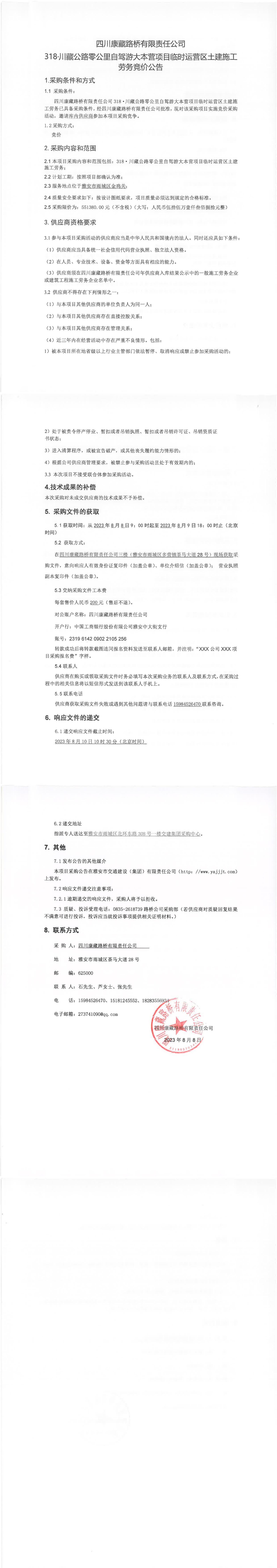 四川康藏路橋有限責(zé)任公司318·川藏公路零公里自駕游大本營(yíng)項(xiàng)目臨時(shí)運(yùn)營(yíng)區(qū)土建施工勞務(wù)競(jìng)價(jià)公告
