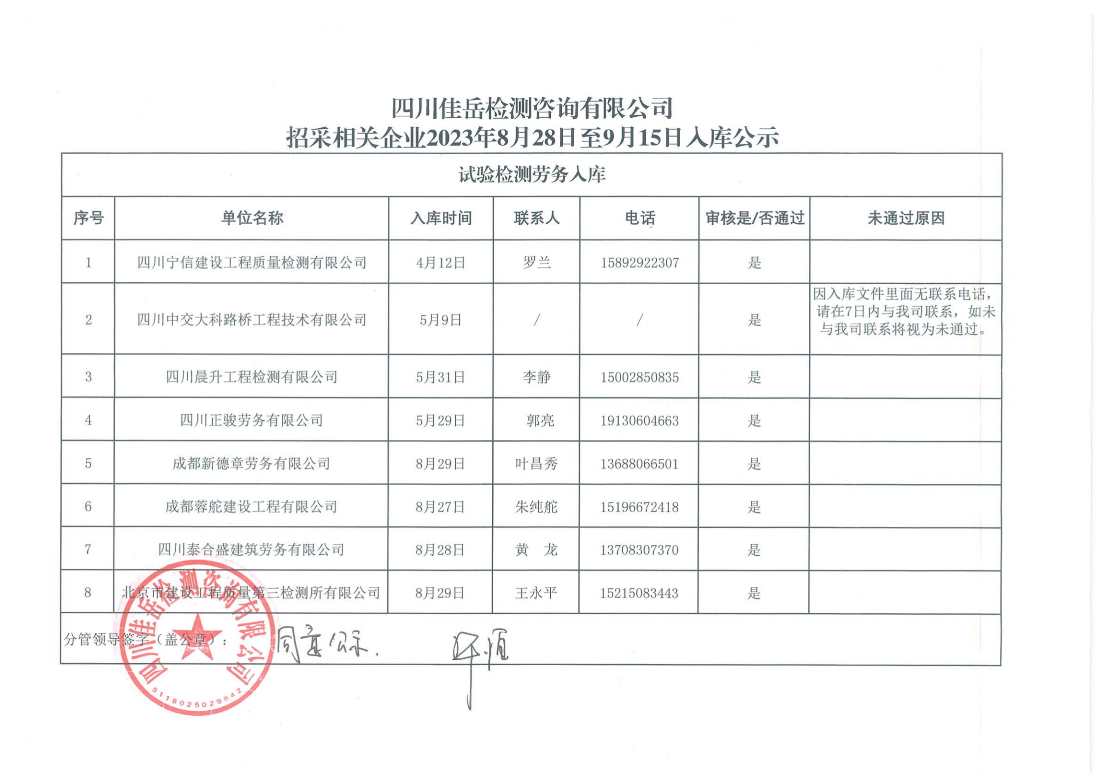 四川佳岳檢測(cè)咨詢有限公司招采相關(guān)企業(yè)2023年8月28日至9月15日入庫結(jié)果公示