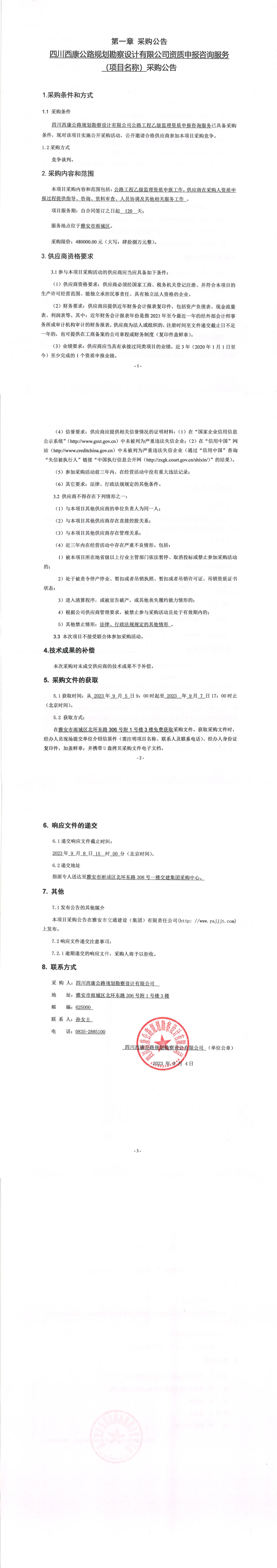 四川西康公路規(guī)劃勘察設(shè)計有限公司資質(zhì)申報咨詢服務(wù)(項(xiàng)目名稱)采購公告
