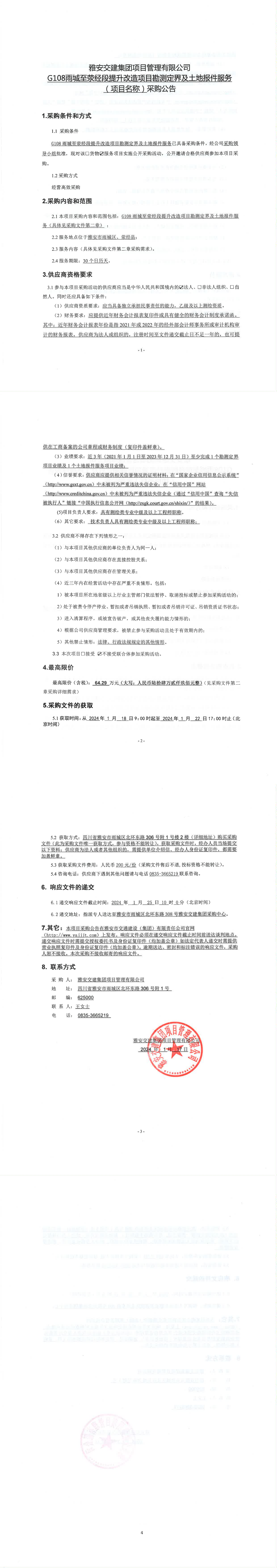雅安交建集團(tuán)項(xiàng)目管理有限公司G108雨城至滎經(jīng)段提升改造項(xiàng)目勘測(cè)定界及土地報(bào)件服務(wù)(項(xiàng)目名稱(chēng))采購(gòu)公告