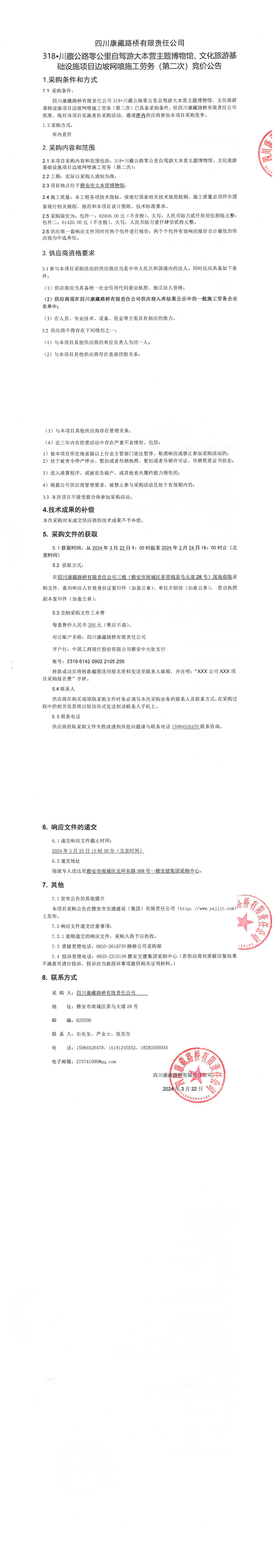 四川康藏路橋有限責(zé)任公司318·川藏公路零公里自駕游大本營主題博物館、文化旅游基礎(chǔ)設(shè)施項目邊坡網(wǎng)噴施工勞務(wù)流標(biāo)通知