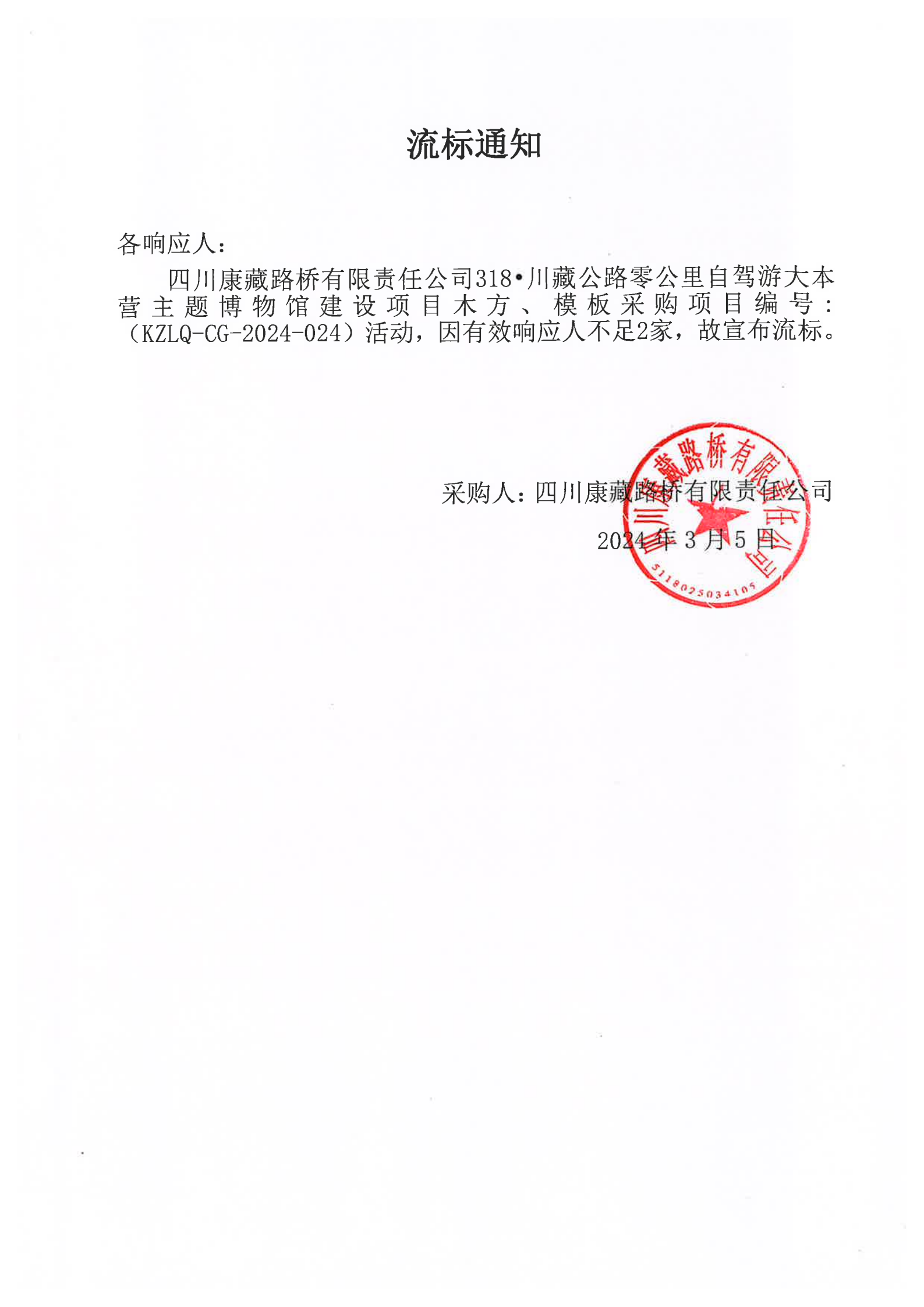 四川康藏路橋有限責(zé)任公司318·川藏公路零公里自駕游大本營主題博物館建設(shè)項目木方、模板采購流標(biāo)通知